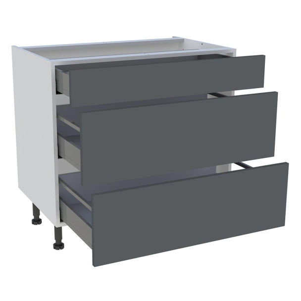 Caisson bas largeur 900mm, 1 tiroir, 2 casseroliers - Tiroir double paroi droite métallique anthracite. (L. 90 x H. 88 x P. 54 cm)
