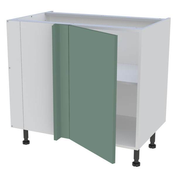 Caisson bas d'angle largeur 1000mm, 1 porte battante ferrage gauche - Charnières amorties métalliques clipsables ouverture 110° . (L. 100 x H. 88x P. 54 cm)